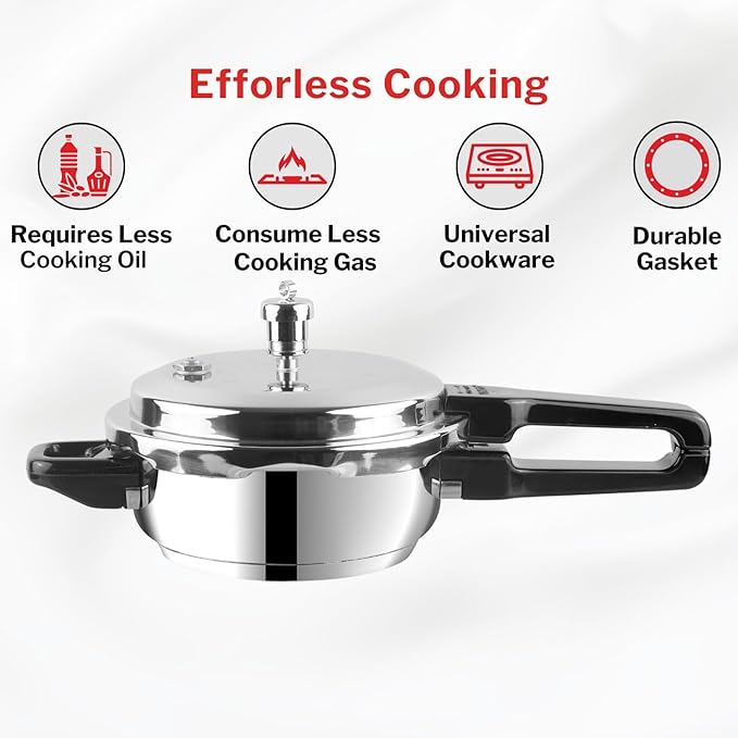 Vinod V-3L Stainless Steel Sandwich Bottom Pressure Cooker, 3-Liter