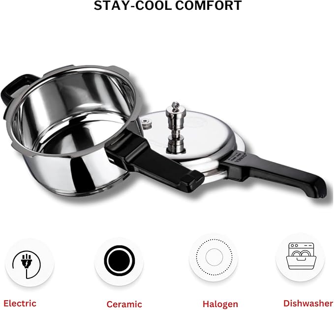 Vinod V-5L Stainless Steel Sandwich Bottom Pressure Cooker, 5-Liter,Silver,Medium