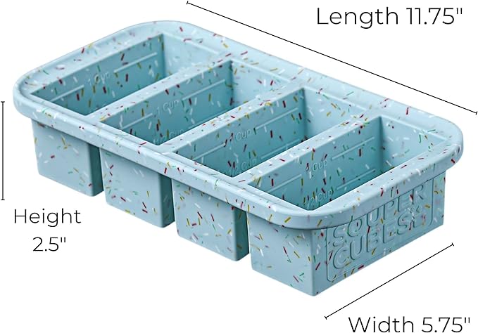 - EASY TO PORTION: These soup cubes for freezing come with convenient fill lines at 1/2 cup, 1 cup, 125 mL, and 250 mL. Each tray measures 11.75"" L x 5.75"" W x 2.5"" H.