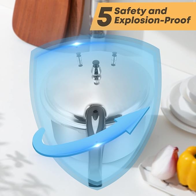 - 【Secure Locking System】The self-locking design of our canning pot ensures a tight seal, while providing comfortable and secure usage. Rest assured that your pressure cooker will maintain its integrity throughout the entire cooking process.(Note: Before locking the lid on the pan, you need to press to expel excess air from the pan.)