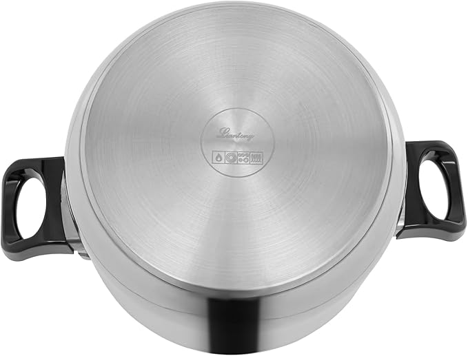 - 【Thoughtful Design】: It adopts a flat multi-layer composite bottom. The interior layer is made of 201 stainless steel, the middle is an aluminum layer, and the outer layer is 410 stainless steel. It not only transfers heat quickly and evenly, effectively preventing the sticking pot, but also has the ability to conduct magnetism, so this pot can be used on the induction stove.